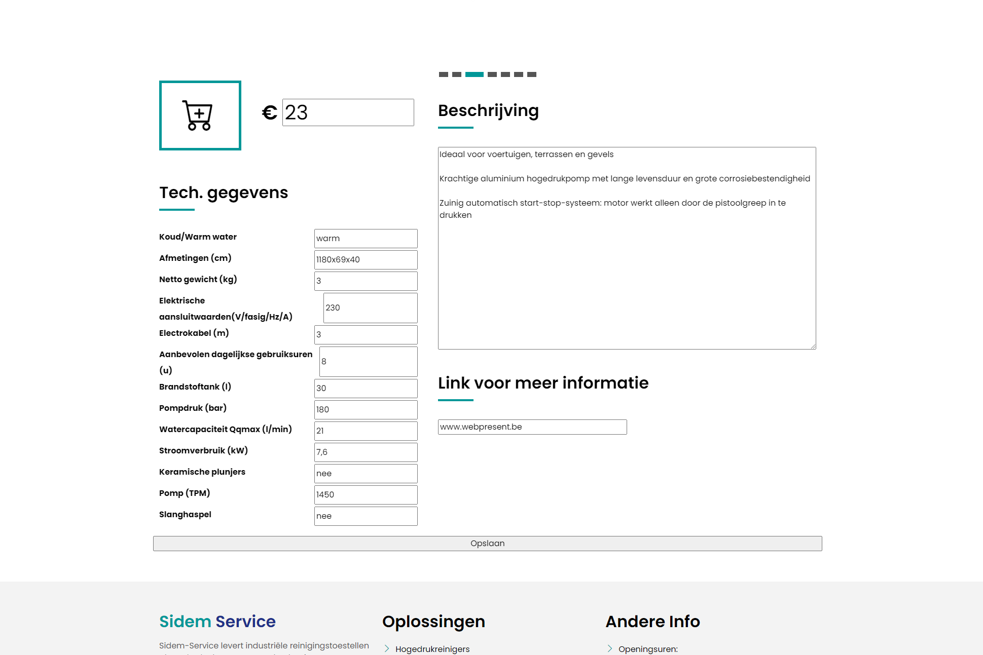 Een easy-to-use beheerpaneel voor Sidem Service om de producten en hun details makkelijk zelf aan te passen.
